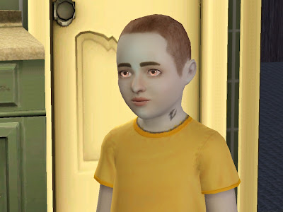Anyway, this is Abner as a child. He was given the "perfectionist" trait in addition to his virtuoso and couch potato traits. He wanted to pick an "edgy" haircut, so I think he looks pretty cool.